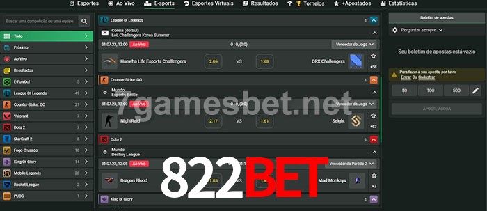 A aposta 822Bet oferece aos jogadores a experiência mais conveniente de apostas em eSports!